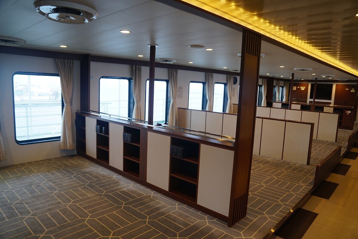 そういえば一度も撮っていなかったエントランスはこんな感じ。3時間の昼行便が中心の航路ですので、豪華にする必要はないですね。